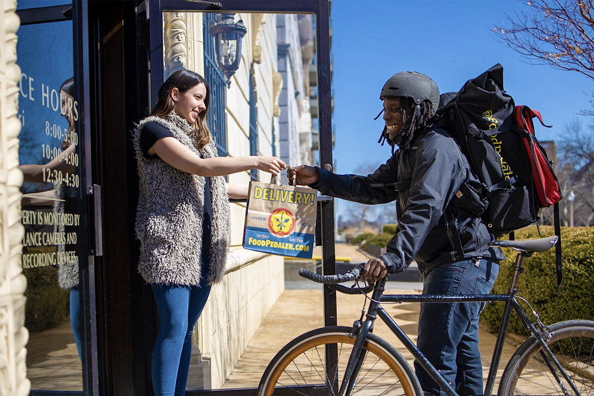We're St. Louis City's favorite bike-powered lunch delivery and catering service, delivering delight by bike since 2013. Our fast, friendly and remarkable Pedalers bring you the best food in town when you want to stay in!